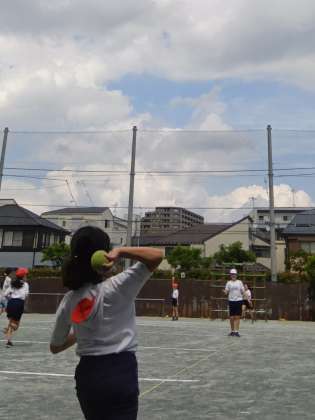 いろいろな学年のソフトボール投げの練習を紹介してきましたが、こちらは5年生の先日の練習の様子です。