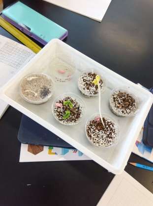 5年生は、植物の「発芽(芽を出すこと)」のために何が必要か、実験で確かめています。