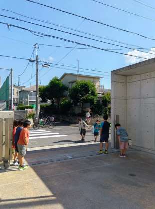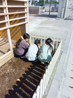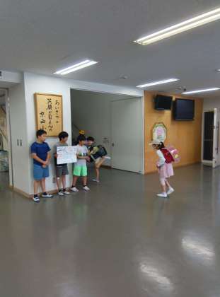 おはようございます。今日も4年1組の「あいさつし隊」活動中です。昨日、校舎内でも行っていると聞いたので、様子を見てみると、