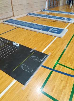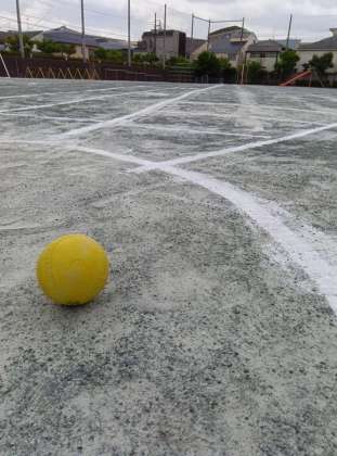 今日は体力テストが予定されています。朝ラインを引き直し、準備万端です。曇っていて、運動にはちょうどよさそうです。
