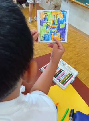 同系色でグラデーションのように塗っていく子もいれば、いろいろな色がちりばめられた宝石箱のように塗っていく子もいて面白いです。(○○の宝石箱や〜)