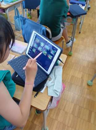 などについて、たくさん予想を立てていました。第二校庭の脇にツルレイシは植えてあります。少し狭いところなので、交代で観察したり、写真を撮ったりする間、早めの夏探しもしていました。