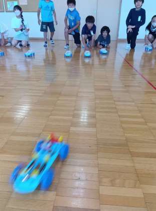 作っては試し、作っては試し、を繰り返し、できた車を走らせます。いろいろな車ができていました。