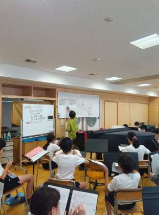 6年生の音楽は、合奏練習の真っ最中でした。以前に、リコーダーで練習していた「雨のうた」です。
