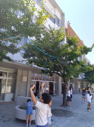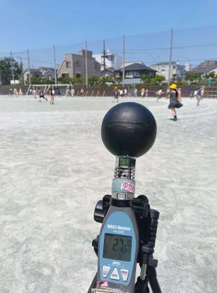 昼休み、相変わらず太陽が照っています。休み時間ごとに測っているWBGTの値は27〜28℃を行ったり来たりです。風があり、気温が30℃を超えているようには感じませんが、注意が必要な値ではありますので、気を引き締めていきます。