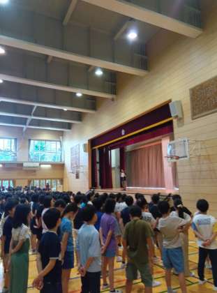 外で、暑い暑いと思っているうちに写真を撮るのをすっかり忘れて気が付けば全校朝会でした・・・
