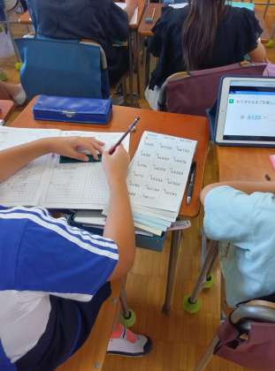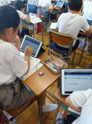 教科書の問題をノートに解く、くり返し計算ドリルをノートに解く、タブレット上でわり算の筆算を解く・・・様々な練習方法があります。本人が選択しているのか、順に行っていくのか分かりませんが、一様に一生懸命問題を解いています。