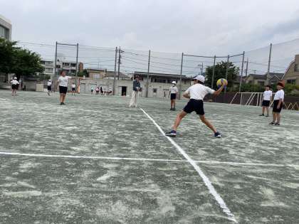 校庭では、ボールゲームクラブやバスケットボールクラブがゲームをやっていました。