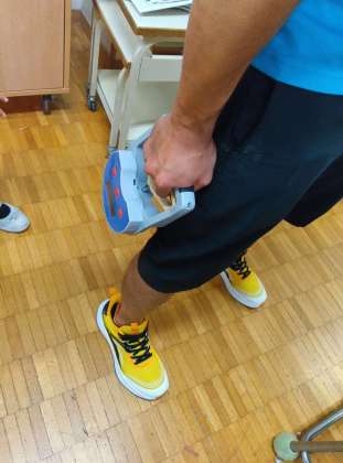 まとめて計測できるだけの数がないので、計測器が各学級を回っていきます。この日は、5年生の学級に握力計や長座体前屈の計測器が来て、握力と座った姿勢での前屈の数値を測っていました。