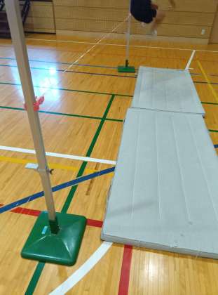 「はさみ跳び」は、バーに対して垂直に助走して、ハードルを跳び越えるのと同じように足を大きく開いて飛び上がる跳び方で、一番古くからある跳躍法と言われます。その後に、ベリーロールや背面跳びが生まれました。こちろん後から生まれた跳び方の方が進化した形ではありますが、安全面での問題もあり、はさみ跳びのみで行います。