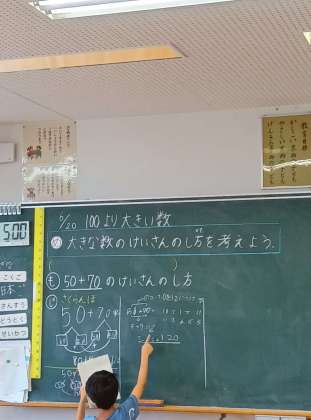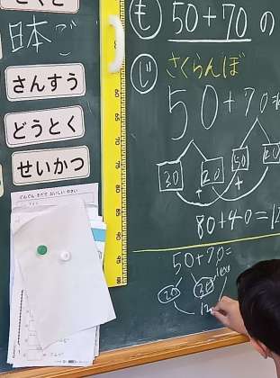 ある子は、70を50と20に分けて100を作り、そこに20を足すから120と説明しました。