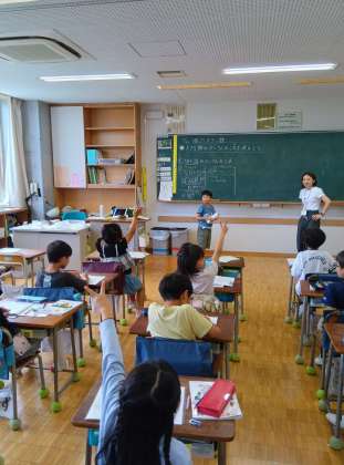 です。答えは120。ではなぜ120になるのか、考え方を黒板で発表していました。