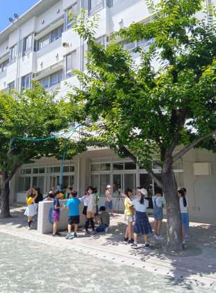 そんな暑さの中ですが、子どもたちは元気に校庭を走り回っています。