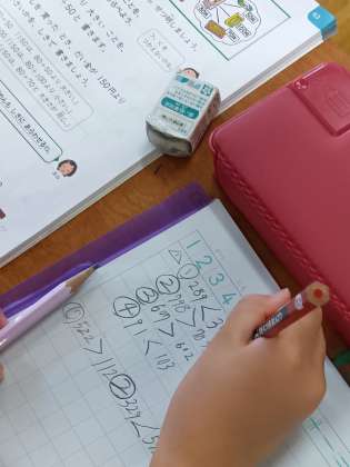 100よりも大きな数を学習した2年生。今日は、大きさ比べの問題を解いていました。