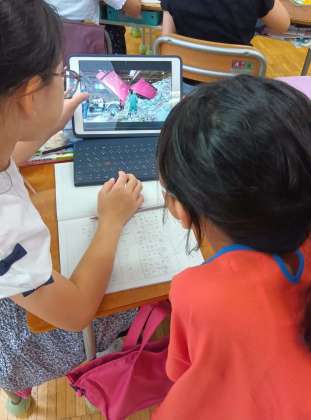 この日は、ごみの処理について調べ、学習の計画を立てていました。ごみ収集車のことやごみ処理の過程について調べている子が多かったです。
