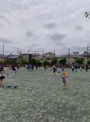 第2校庭に行く5年生に誘われて芝生の第2校庭へ。芝生の方が、気持ち涼しいでしょうか。この暑さの中でも子どもたちの遊びチョイスは、やはりおにごっこになるというのが不思議です。