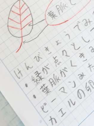 植物の生長について学習をしている6年生は、根から吸収された水が茎の中を通って全身に送られ、葉まで達することを実験で確かめました。そこでこの日は、葉の観察です。