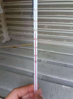 朝の気温は27℃。ちなみにこの百葉箱に入っている温度計は「アルコール温度計」というんですが、学校では学習でよく使います。中に入っているのは色を付けた灯油だそうです。なぜ「アルコール温度計」という名前なのか・・・昔は同じ仕組みの温度計でアルコールが使われていたからのようです。より高い温度の測定ができる灯油に変わってからも名前が残ったそうです。へぇ。