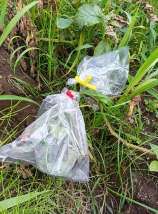 6年生が、じゃがいも畑で何やら実験中です。