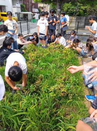 さて、ちょっと授業裏話。今回の実験、天候が結果を大きく左右します。葉の光合成による「蒸散」が起こるかどうかは日光が当たるかによるからです。この日は、朝から薄曇り。担当は、朝から畑に行き、今日の日照で光合成と蒸散が起こるか予備実験を繰り返し行って準備していました。それで「いける!」と判断して、この日の授業の実験GOとなったのです。小学校の授業、天候・気候に左右されるものが結構多く、意外に苦労しています。授業裏話でした。