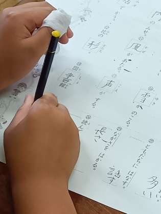 そろそろ各学年、今学期に学習する新出漢字の学習を終え、小テストなども終わり、まとめの漢字テストをに入っていく頃です。(※習う字の数も違うので、学年により実施時期には差があります。)みんな一生懸命練習して、先生に見てもらっていました。間違えてた字は直して正しく覚えます。