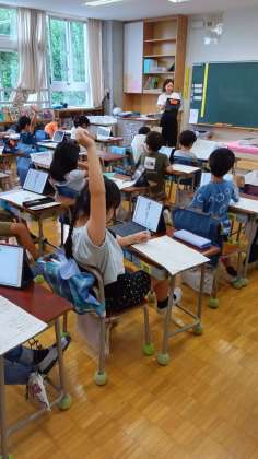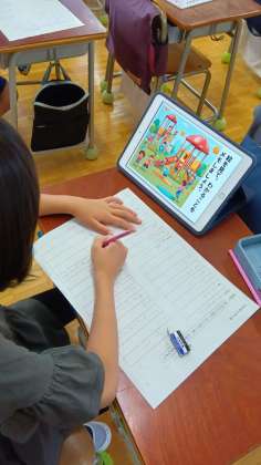 話を聞いたり、何か見たことを短い言葉でメモを取る練習をします。この日は、絵を見て分かることを短時間で、短い言葉でメモをしていました。メモには、コツがいります。メモしたことを発表し、友達のメモしたことも共有してメモをする視点がだいぶつかめてきたようです。
