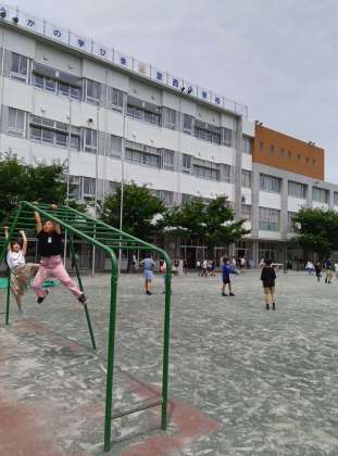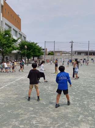 今日は朝の時間に運動集会があり、体を動かす遊びをしながら、運動委員会から「暑い中でも熱中症に気を付けながら運動をしていきましょう」という呼びかけがありました。今日は、1・2・3年生、明日は4・5・6年生向けに行います。