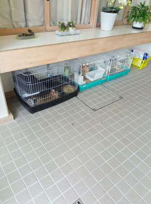うさぎさんたち3羽は、昇降口に移住中です。この辺りは、ドアが閉まっていれば、体育館などからの冷気でかなり涼しく快適に過ごせると思います。更に暑くなってきたときには、再度場所を検討していきます。