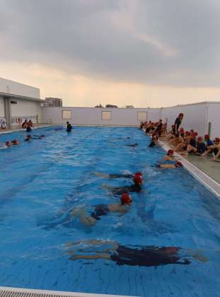 6年生、かなり意識して伸びてゆっくり泳げていました。ぜひ少ないかきで、しっかり進む泳ぎを身に付いていってほしいと思います。