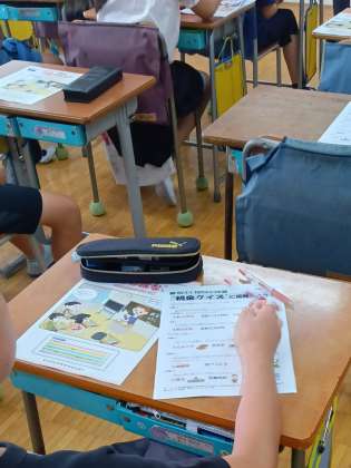 順を追って説明していただき、子どもたちには税金の必要性が分かりやすく伝わったと思います。(この説明は分かりづらいと思いますが・・・すみません。)