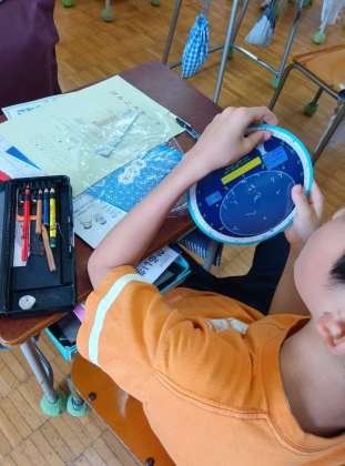 4年生が理科の星の学習で使用する「星座早見」の使い方を学習していました。
