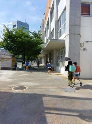 日差しを防ぐのに帽子や日傘が有効です。日傘を差してくる児童もいますが、まだほんの数人です。日傘を差すと上からの熱はかなり防げます。まだアスファルトが熱せられていない朝なら特に有効だと思います。日傘を含め、児童自身がしっかり管理できるものに限りますが、その他熱中症予防グッズなども御活用ください。