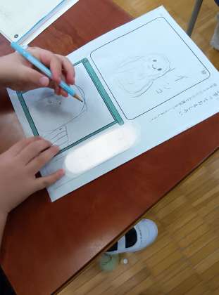 「インコ」「たな」などの絵がありました。まずは絵を描き、その形を生かして「漢字」に変換します。象形文字は、少しずつ形を変えて最終的な漢字になるので、初めの形はどの子も何だか複雑な形で漢字には見えませんが、そのものの形を生かして、うまく漢字にしていました。初めに書いた字から、変化して、変化して、漢字っぽい漢字(感じ?)にするんでしょうか。それも見てみたい気がしました。