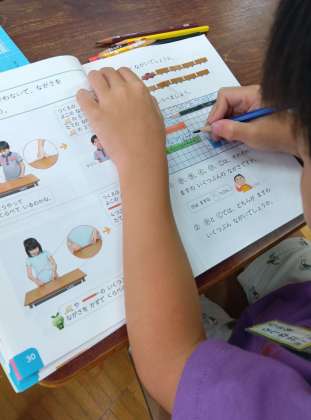 こうして、同じものがいくつ分あるかで比べなくてはいけないことに気が付いた1年生は、同じマス目が何マス分かで比べる良さに気が付いていきます。真ん中の写真です。今回は出てきませんが、最終的には「単位」があると便利であることに気付きます。