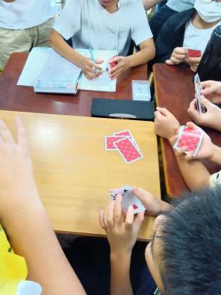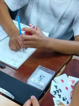 しかし、よく見ると輪の中に、計算ドリルをしている子がいるではないですか。かわいそうに、トランプは別の場所に移ったら・・・と思ったら、左手には「トランプ」!参加者でしたか。マルチタスク対応、ハイスペックです。