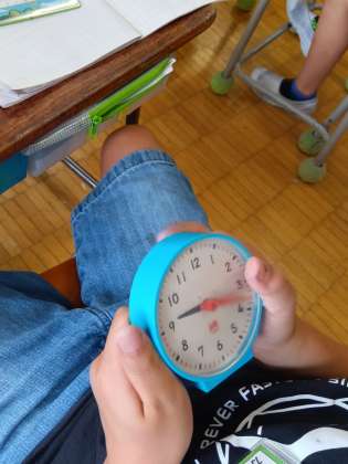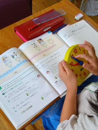 そして難しいのが、「時間」です。午前●時の●時間●分後は何時でしょう。といった問題です。コツをつかむまでなかなか難しいです。時計の模型を使って、針を動かし、感覚をつかんでいきます。そうしているうちに慣れ、次第に頭の中で針を動かせるようになりますので、たくさん手を使って動かしておくといいと思います。