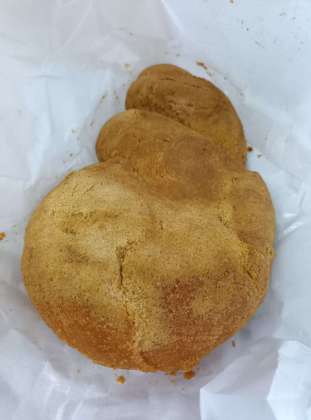 形が違う・・・前回はいわゆるコッペパンの細長い形状をしていた揚げパン、今回は、写真のように織り込まれたようなねじり構造です。