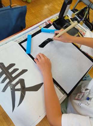 4年生書写では、毛筆で「麦」を書いていました。前日別の学級での取組、行ったらすでに終わっていたので、珍しく予定を見て狙って見に行きました。