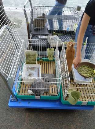 さて、京西小学校のかわいい3羽のうさぎは避暑のため、うさぎ小屋から昇降口の中に移っていますが、毎朝飼育委員さんたちがそうじをしてくれます。今日は涼しく、うさぎたちも快適そうです。そして、ゲージをきれいにしてもらって、かわいがってもらって至福の朝です。飼育委員の児童を見ていると、本当にうさぎをかわいがっているのが伝わってきます。こちら側にとっても至福の朝、それを見ているこちらも至福の朝です。飼育委員の皆さん、ありがとうございます。