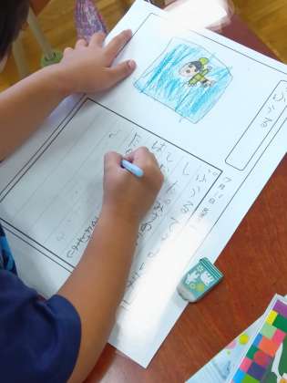 自分で1番のできごとを決めて、思い出しながらそれぞれ書いていきました。したことや見たこと、聞いたことに加えて、「思ったこと」も書くように話がありました。