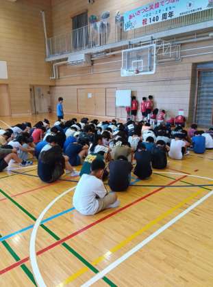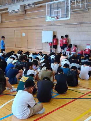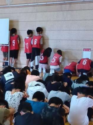 昨日の6年生、学年で体育館に集まっていました。