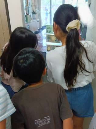※こちらも念のためお伝えしておきます。紙幣をはさんだファイルは、室内側に貼り付けてあります。裏の図柄(1000円札の葛飾北斎!すてきです!)を見たい時には、私に声をかけて入室の許可をとってから見てもらっています。私が部屋を離れる際には、内側から施錠をするようにしています。