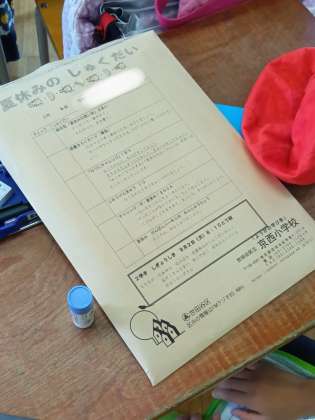 2年生の教室で、夏休みの宿題の配付や1学期の作品の返却が行われていました。