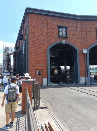 転車場などを見学しながら待ちます。機関車トーマスの世界・・・遠くで別の機関車が汽笛を鳴らし、子どもたちから歓声を上がりました。