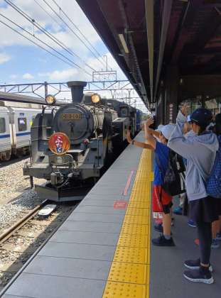 すてきな手旗や特別乗車券、記念の鉛筆もいただきました!雰囲気あります。さあお昼ごはんにしましょう。