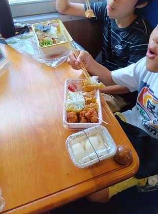 2号車はテーブル付きのすてきな列車、食事も一層おいしく感じます。お弁当の御準備ありがとうございました。