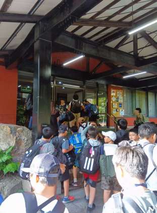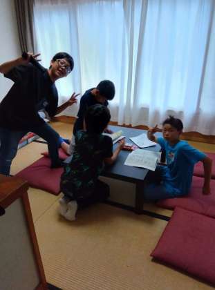 部屋はベットと布団に分かれていてゆったりしています。各部屋に分かれたら避難経路を確認し、入浴までの間に部屋会を開いて宿での過ごし方を確認し、しばしお部屋でのんびりタイムです。こういう時間が楽しいんですよね。わりと余裕をもった日程になっているので、存分に友と関わり、先生と関わり、仲を深めてほしいと思います。
