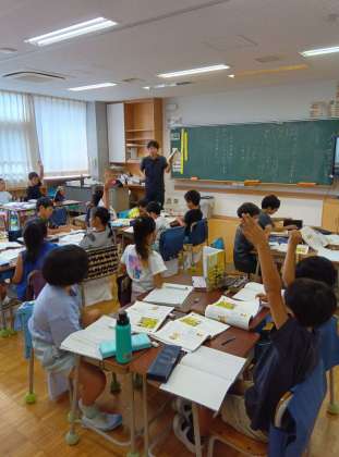 教科書の例で説明の足りないところ探して発表しています。何となく言ってしまいそうな表現があり、それが正確に辿り着けない原因になっていたのをよく見付けていました。これからどのように伝えるとよいのかを考えていきます。
