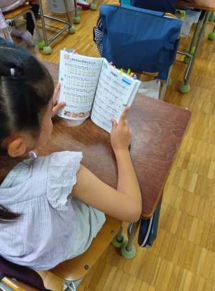 音楽の授業をしていた学級では、「少年時代」を歌っていました。