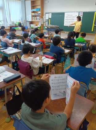 鑑賞して、曲の盛り上がる部分について考えていました。この曲は、結構途中に強弱をつけたり、徐々に盛り上げていき、気持ちの盛り上がりも表現するようなところがあります。富士山だけに、ピーク(頂上)探しですね。いくつか意見が出ていました。盛り上がる部分が分かると、歌い方も変わりますね。